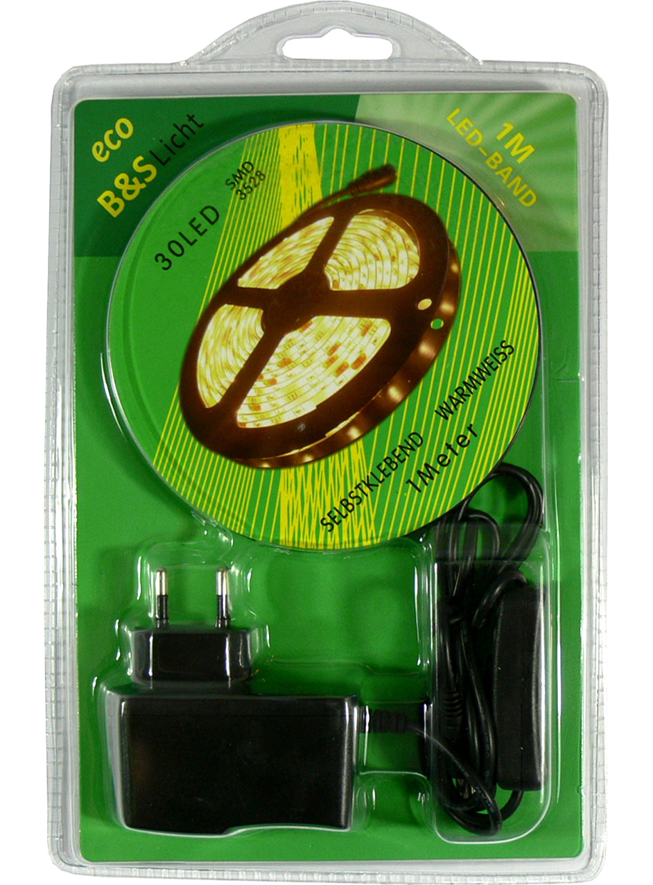 LED-Band, 1 m, 30 LEDs, selbstklebend, DC 12V mit Netzteil, 2.4 W, 120 lm