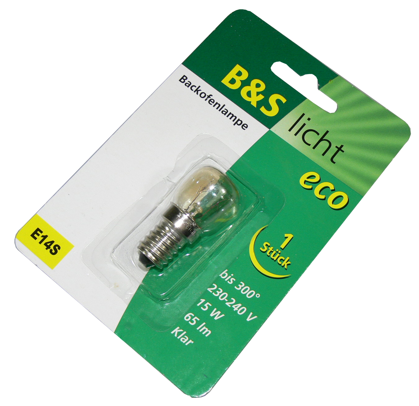 Backofenlampe, E 14S, 230-240 V,15 W, klar, 65 lm