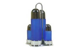 5-teilig (inkl. Ständer), blaues Glas und Kunststoff
