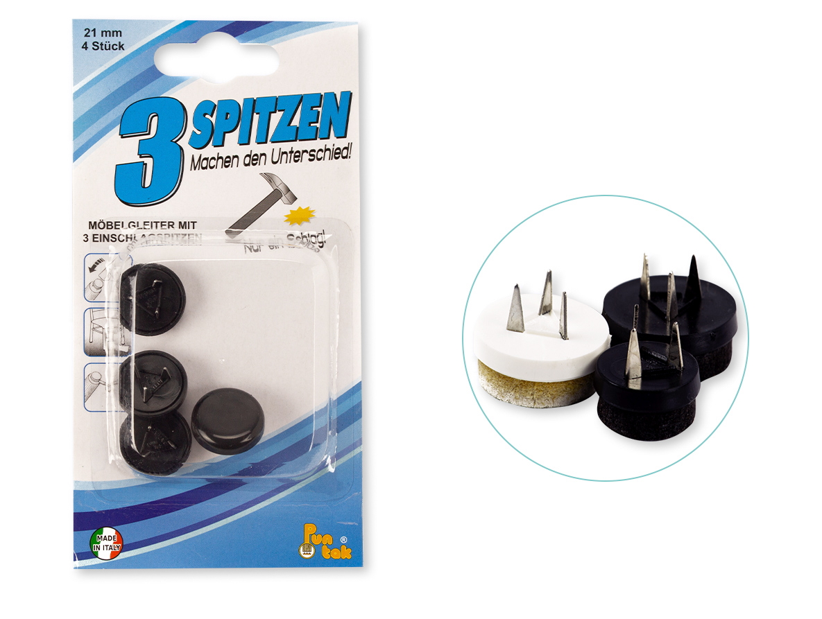dreipunktige Stahlbasis, schwarz, 21mm, 4 Stück
